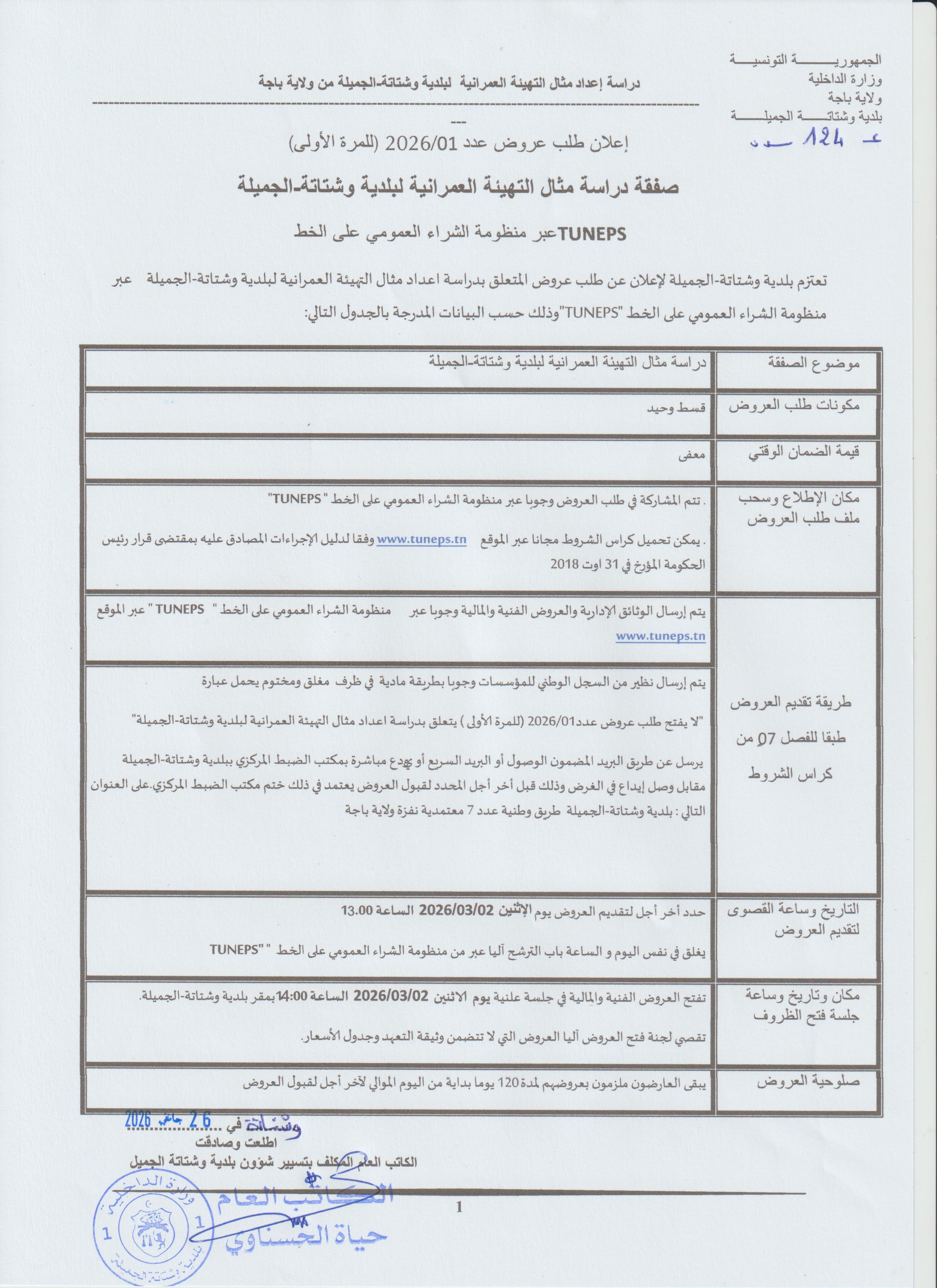 صفقة دراسة مثال التهيئة العمرانية لبلدية وشتاتة الجميلة